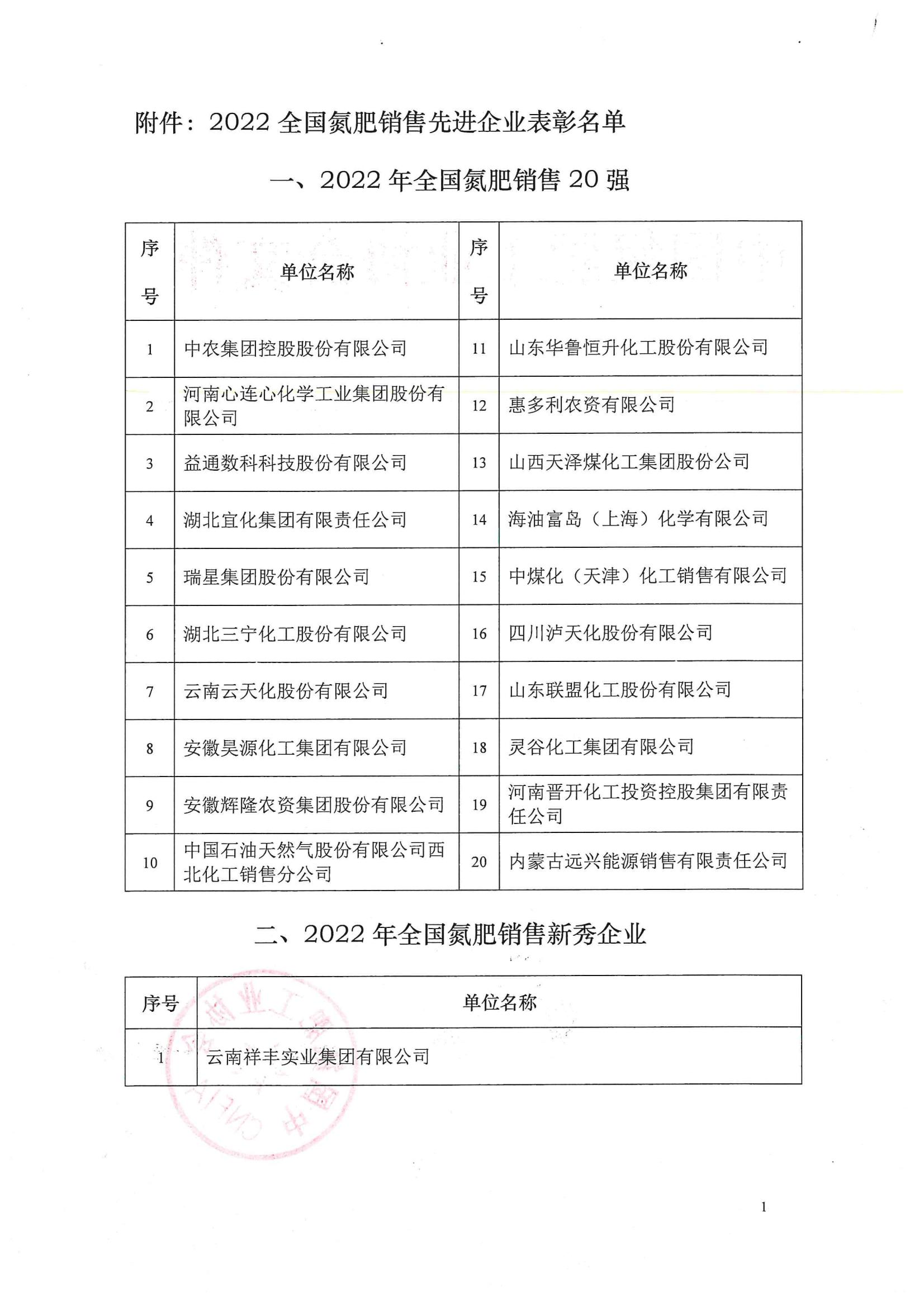 榮獲“2022年度全國(guó)氮肥銷售新秀企業(yè)”稱號(hào)